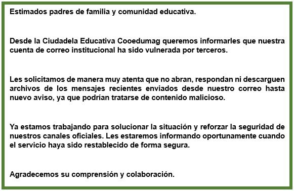 Aquà encontraras los datos esenciales de nuestra institución Ciudadela Educativa Cooedumag